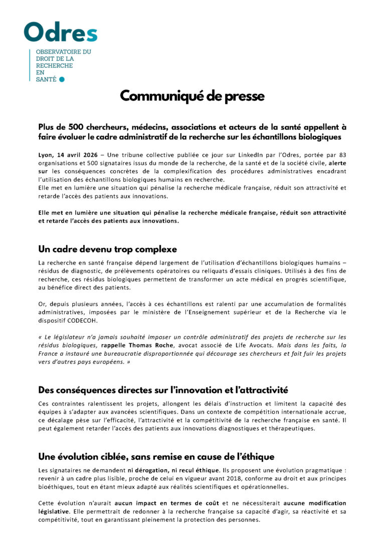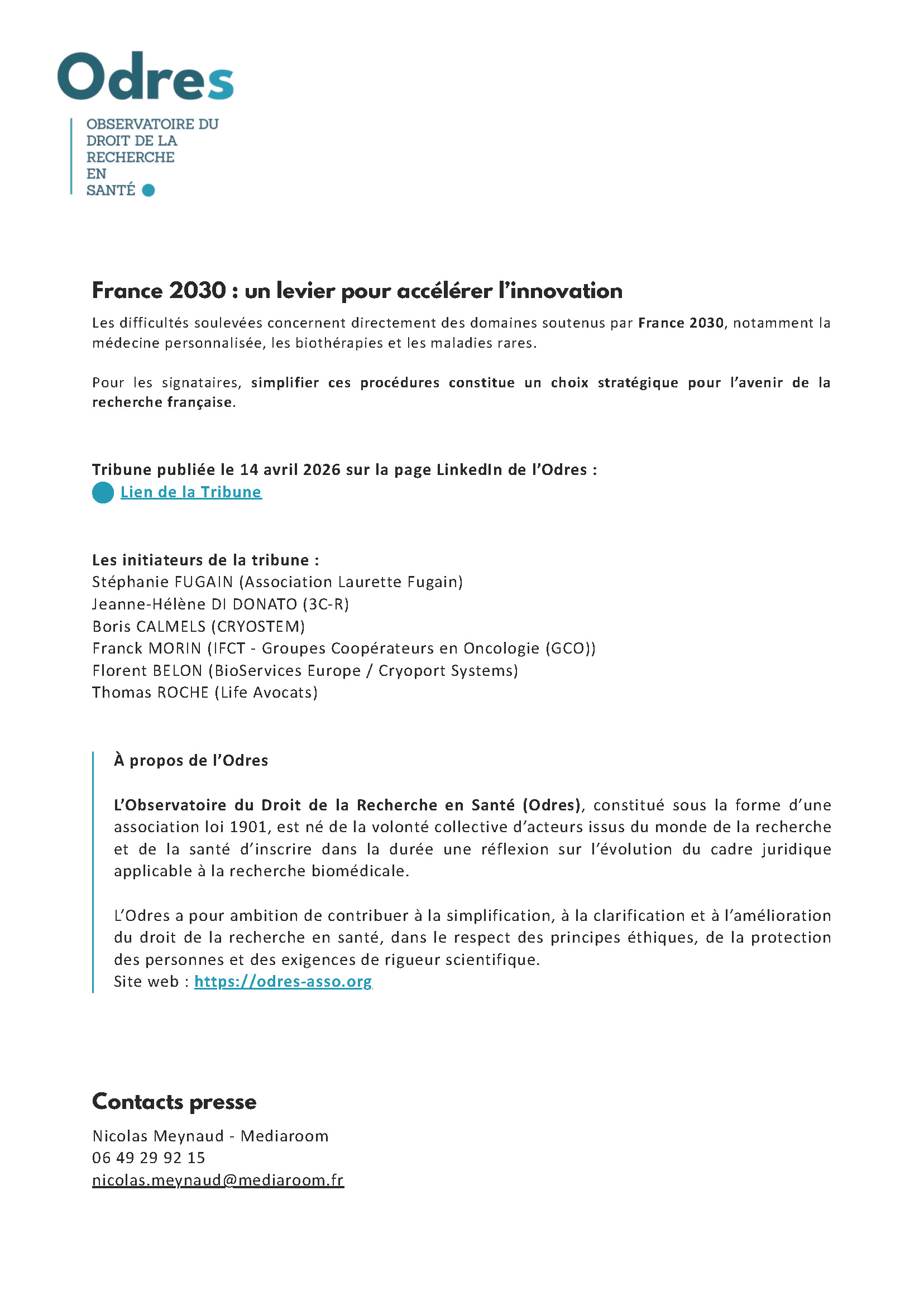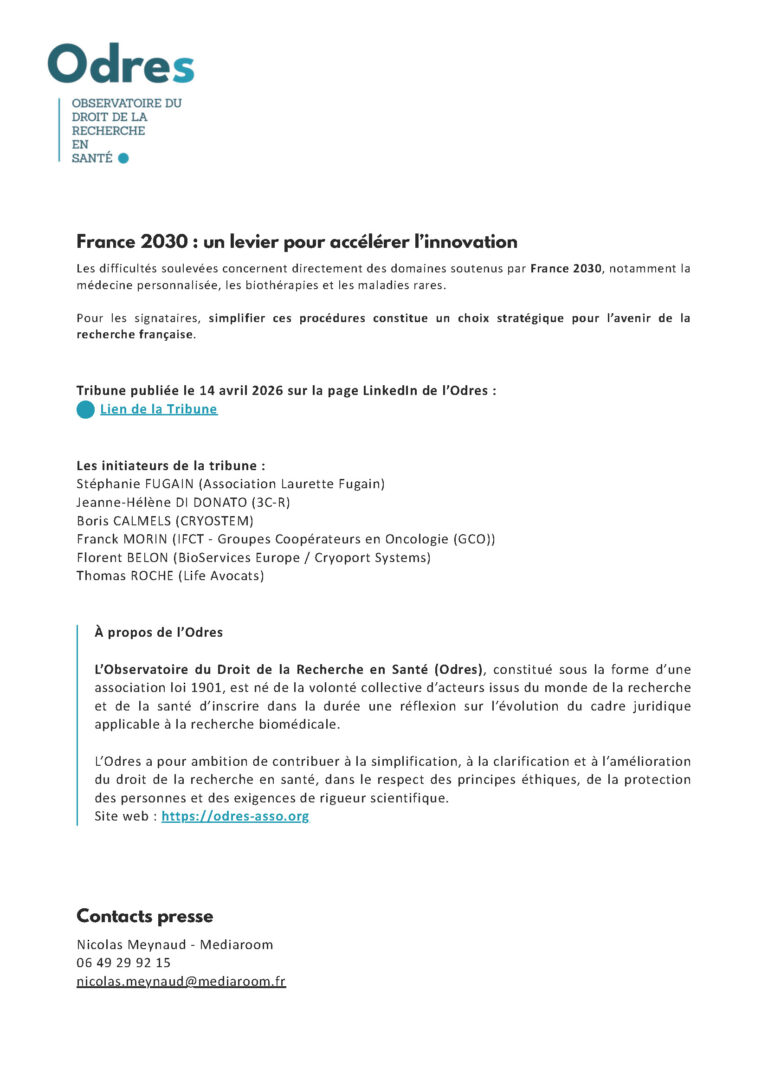 Communiqué de presse, suite à la Tribune publiée sur la page LinkedIn de l’Odres le 14/04/2026