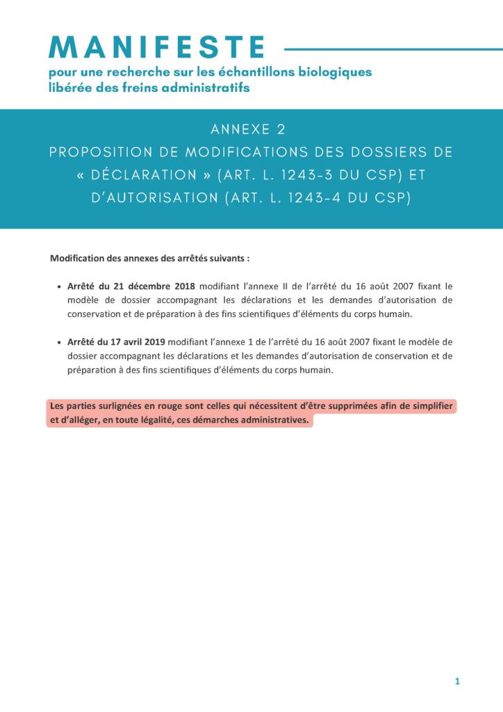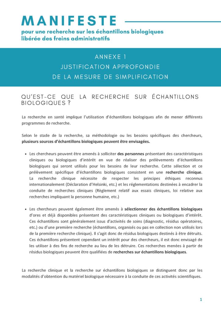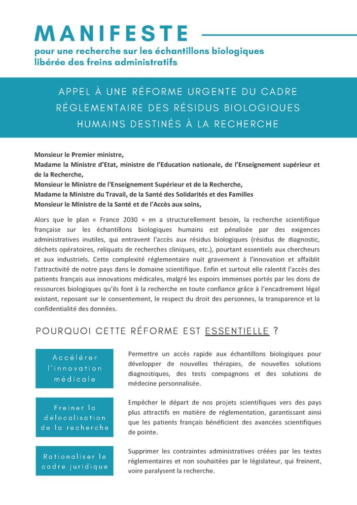 Merci pour l’intérêt porté au Manifeste pour une recherche sur les échantillons biologiques libérée de freins administratifs.